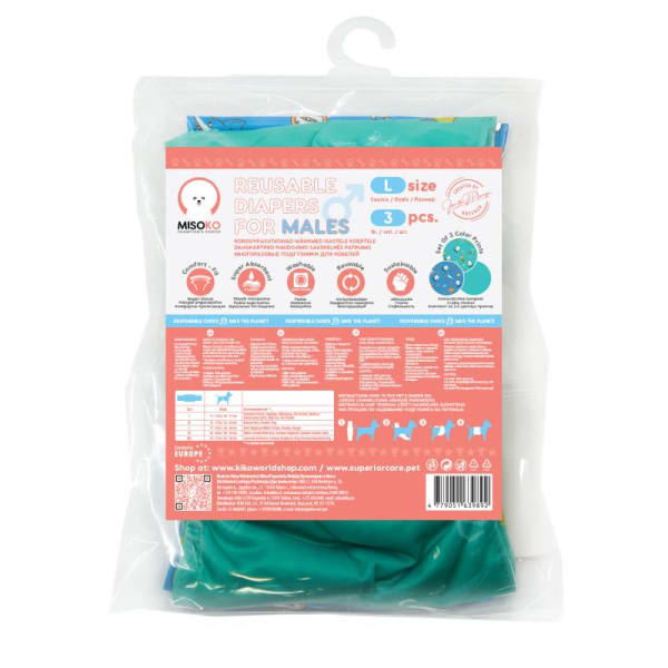 Reusable diaper set for male dogs, Treasure, 3 pcs. L