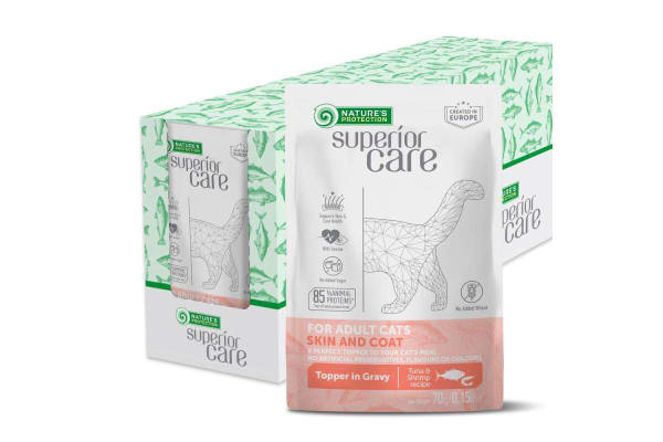 Wet food supplement with tuna and shrimp for the skin and coat care of adult cats of all breeds 2.5 oz x 24